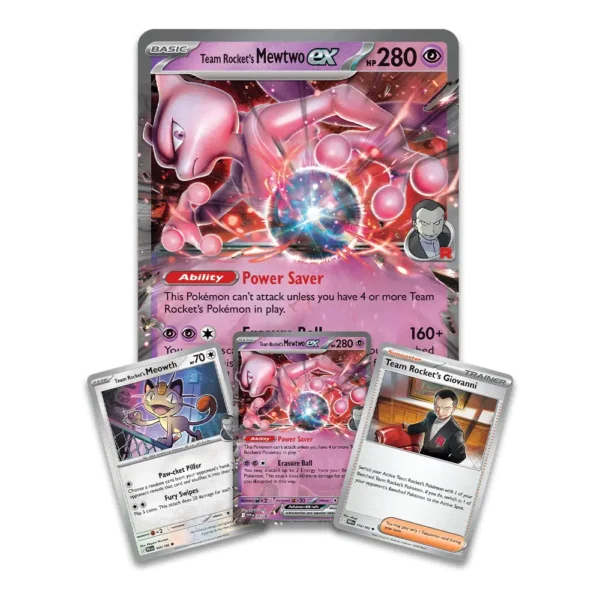 El poder y la ambición se combinan en esta colección protagonizada por Mewtwo ex del Team Rocket, una de las alianzas más temidas del universo Pokémon.