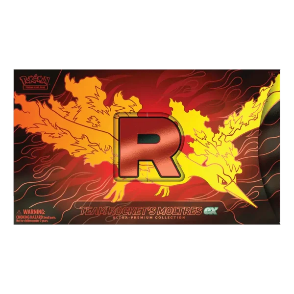 El poder del Team Rocket alcanza su máxima expresión con esta Ultra-Premium Collection de Moltres ex, una edición diseñada para quienes buscan lo más exclusivo dentro del Pokémon TCG. Con una estética dominante, piezas de alta calidad y una cantidad generosa de sobres, esta colección representa una de las formas más completas de experimentar el lado más oscuro del juego.