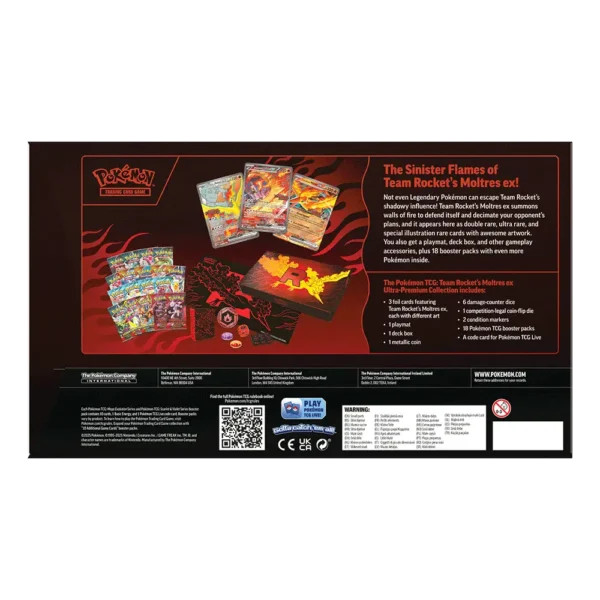 🖤 Exclusividad y presencia en mesa. Esta Ultra-Premium Collection no solo destaca por su contenido, sino por su identidad: Moltres ex del Team Rocket aparece en tres versiones estampadas únicas, convirtiéndolo en una pieza central tanto en juego como en colección. Su diseño y temática transmiten el control, la agresividad y la ambición que caracterizan al Team Rocket.